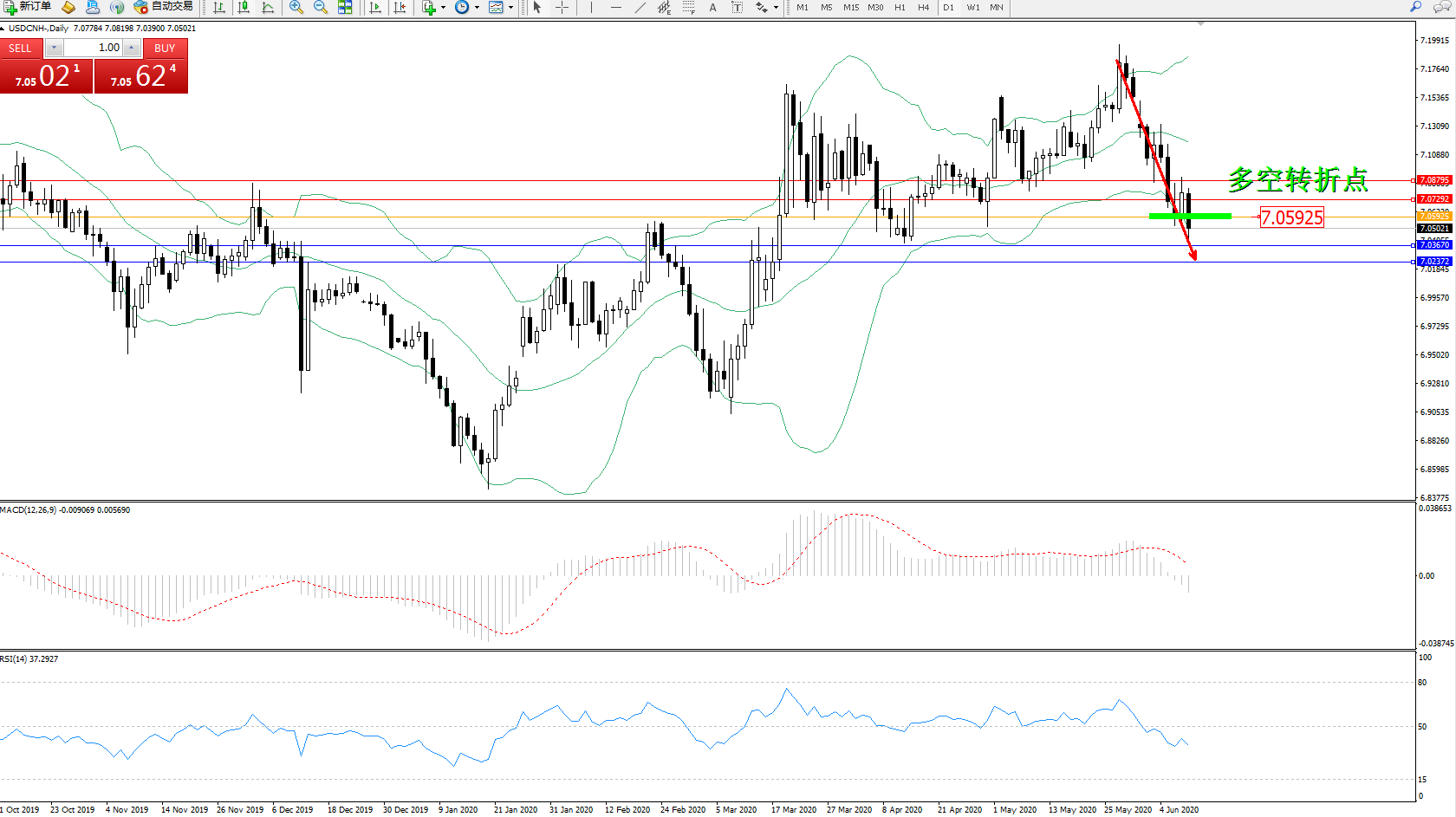 交易策略:7.05925下方看跌,目标7.03670、7.02372