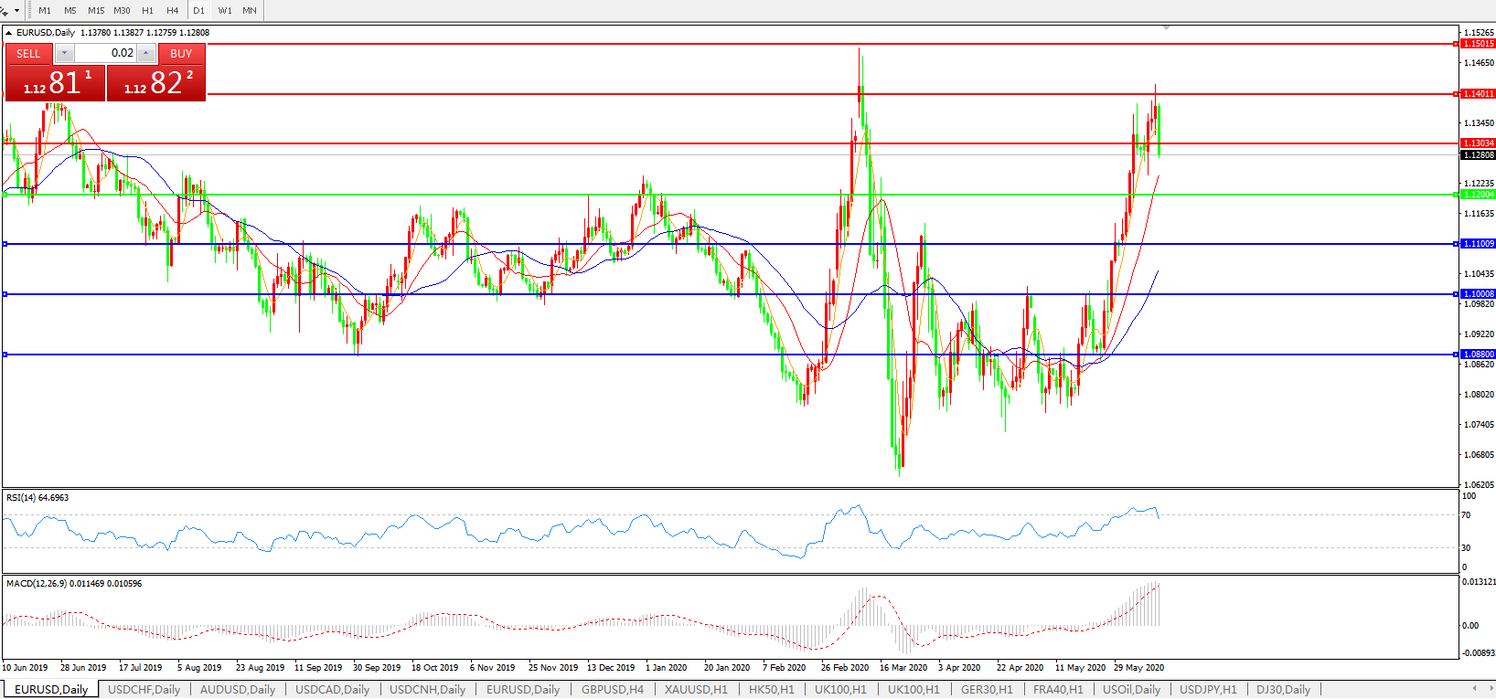 欧元兑美元EURUSD   日线图: