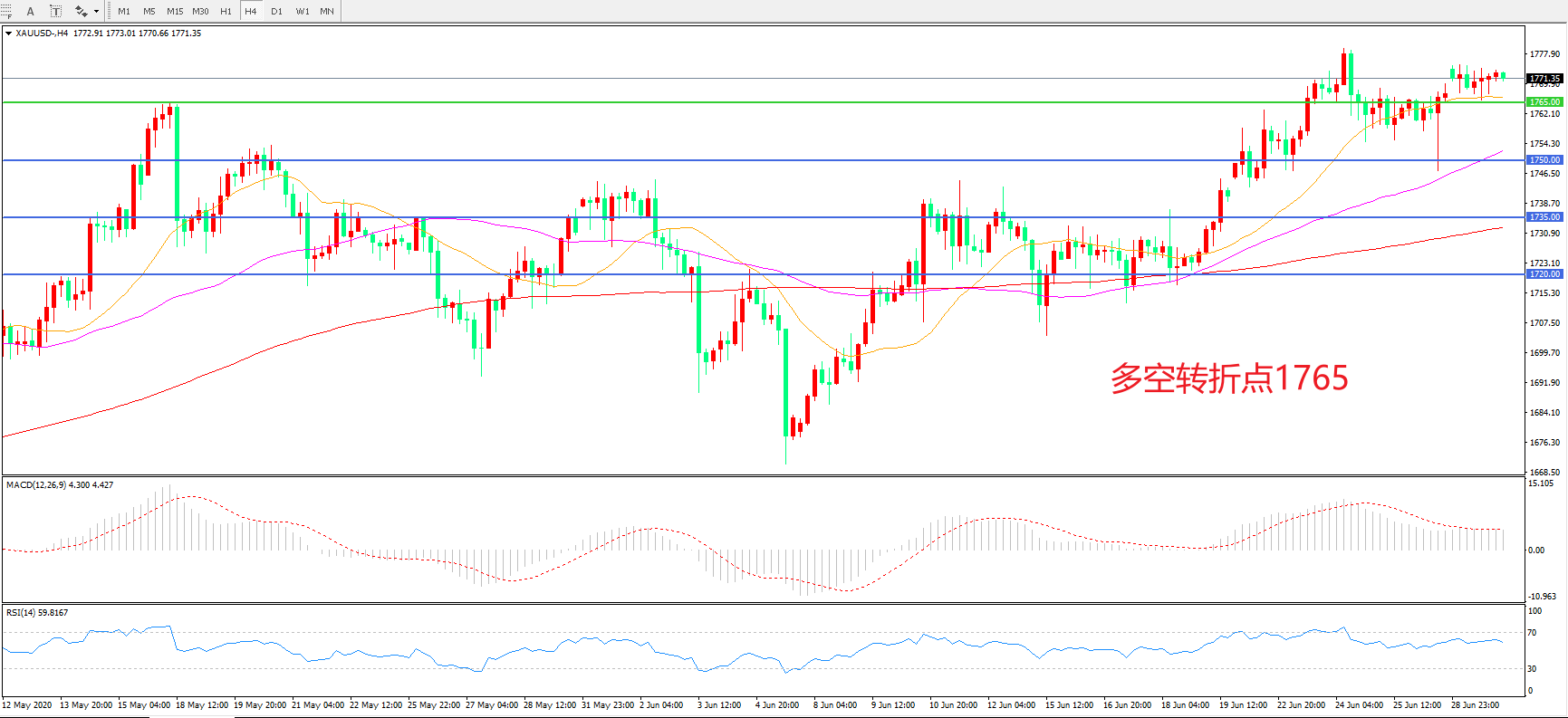 交易策略:在1765.00之上看涨,目标1780.00 1800.00