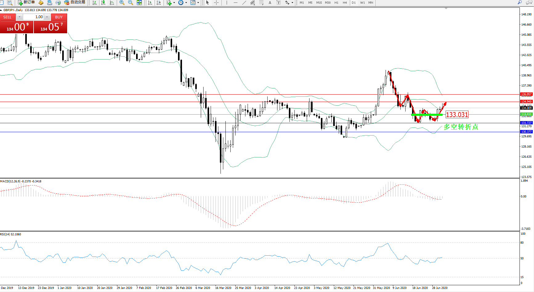 交易策略:133.031上方看涨,目标134.940136.057