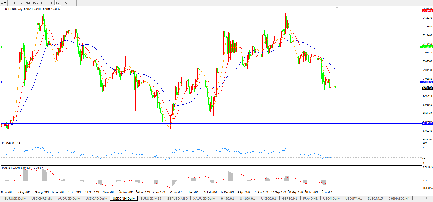 交易策略: 在7.1000之下,看跌,目标价位为7.0000,然后为6.8820。