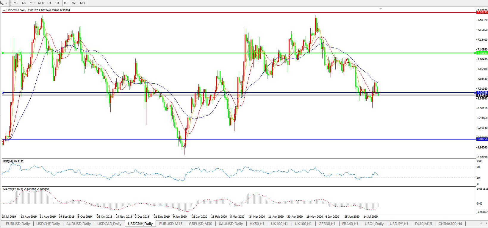 备选策略: 在7.1000之上,看涨,目标价位为7.2000,然后为7.3000。