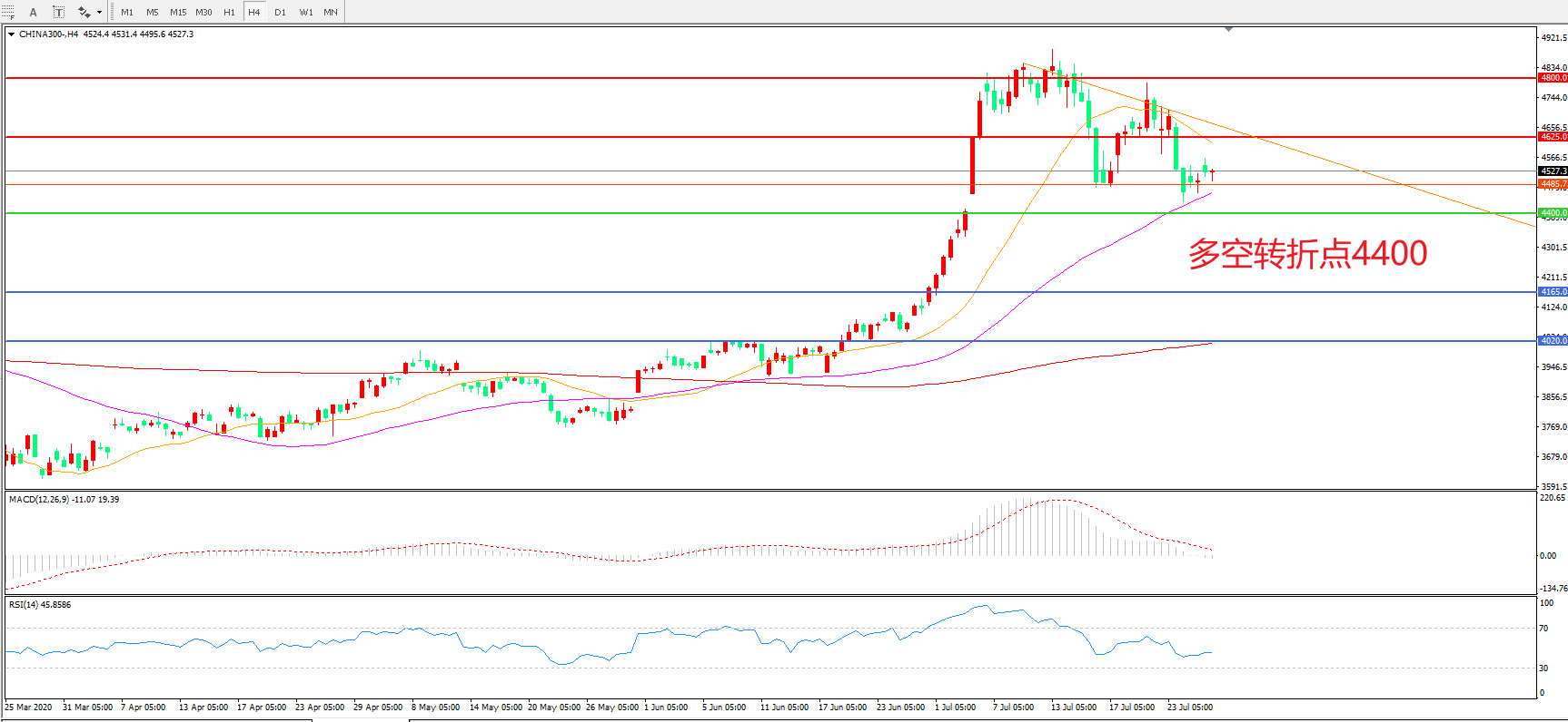 多空转折点:4400.00
