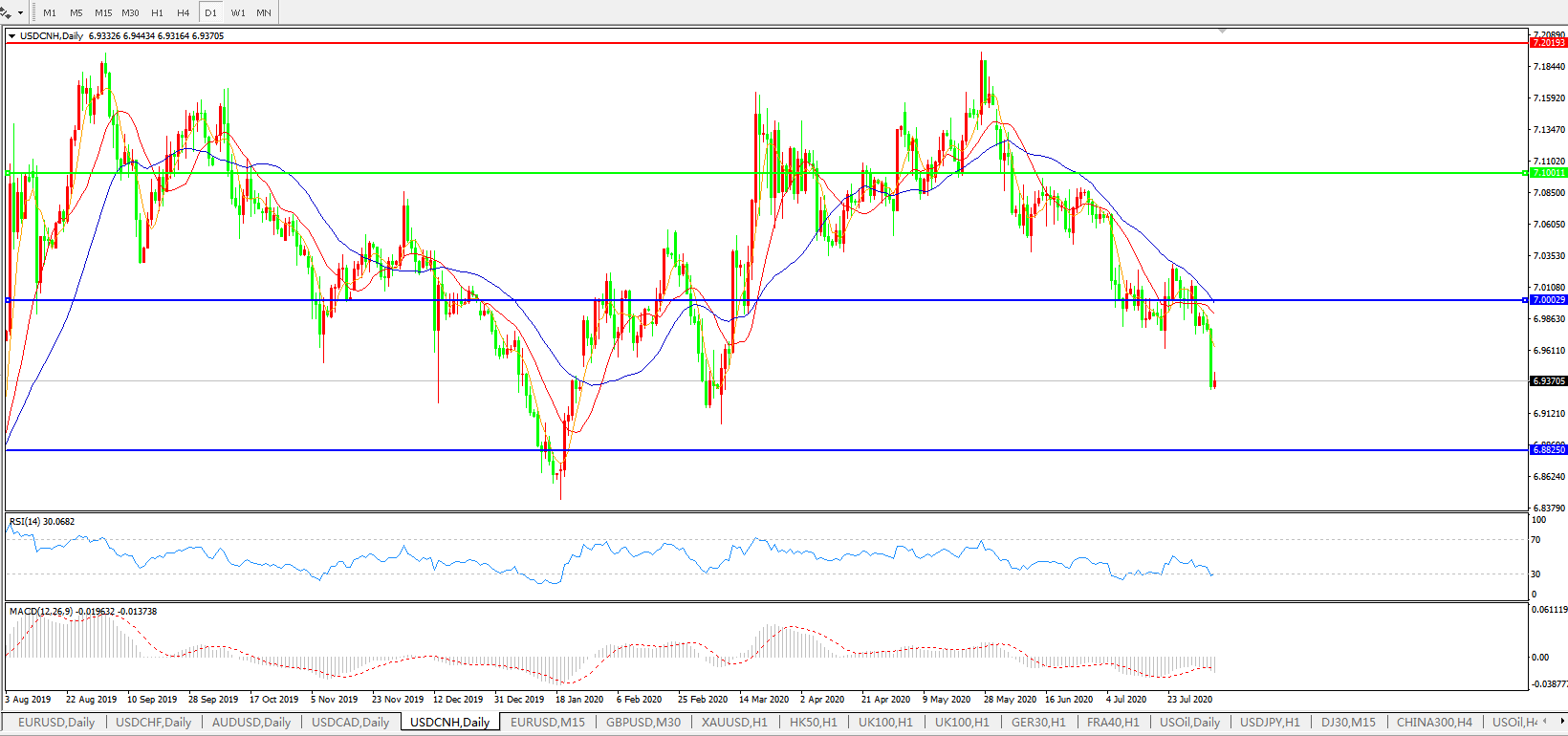 备选策略: 在7.1000之上,看涨,目标价位为7.2000,然后为7.3000。