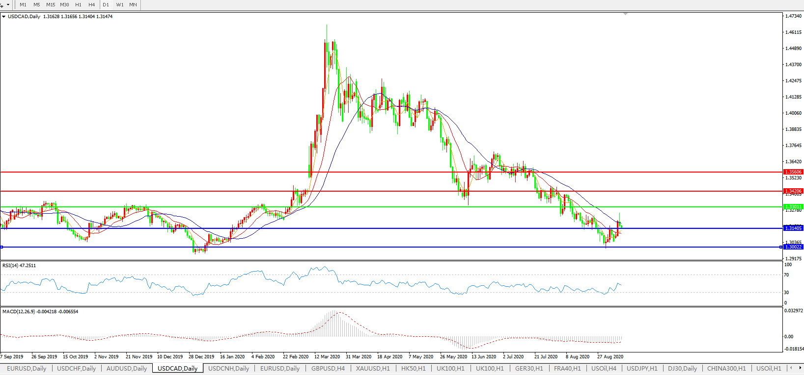 美元兑加元USDCAD 日线图: