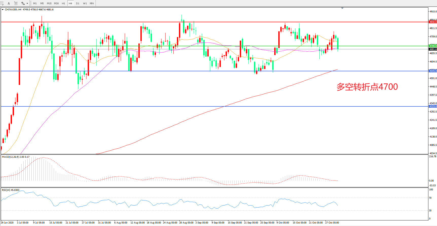 备选策略:在4700.00之下看跌,目标4545.00       4325.00