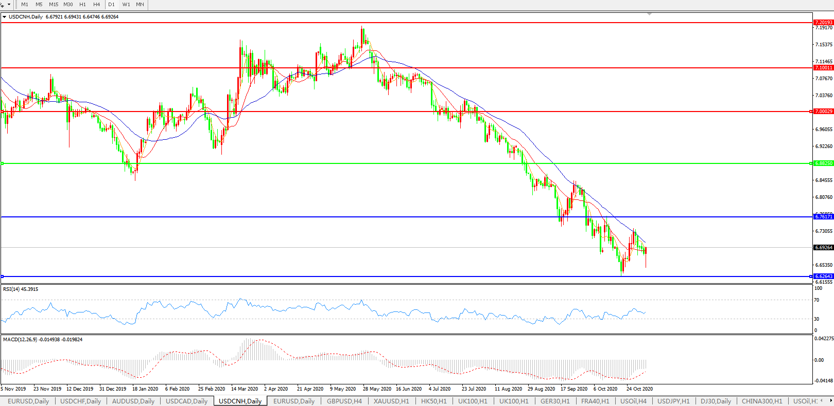 美元兑人民币USDCNH    日线图: