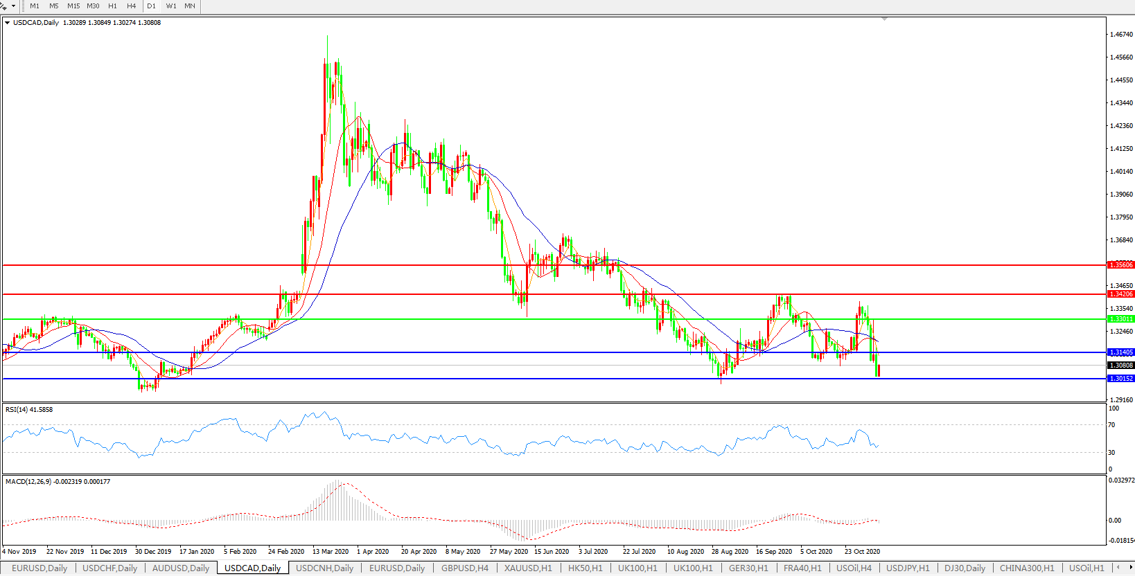 美元兑加元USDCAD    日线图: