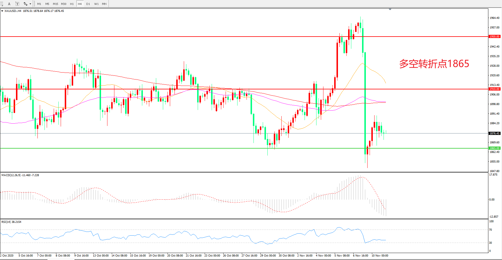 多空转折点:1865.00