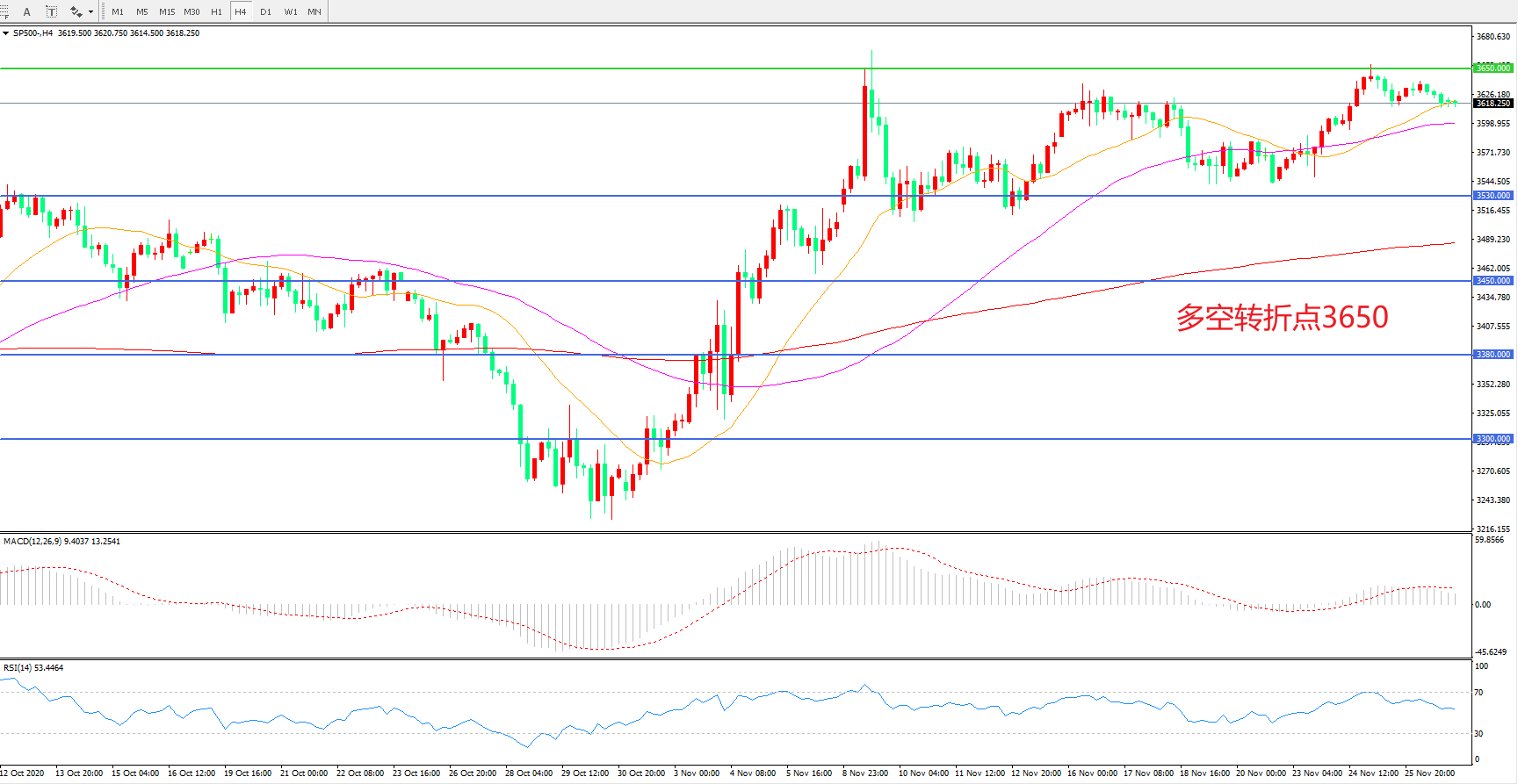 多空转折点:3650.00