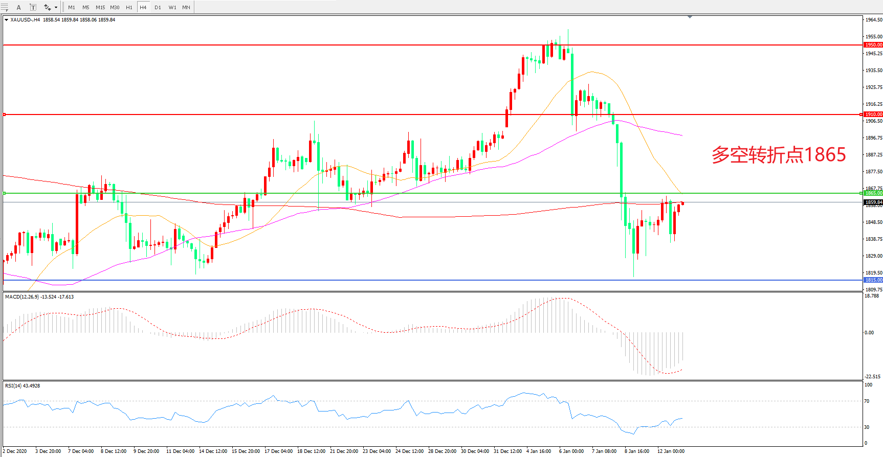 交易策略:在1865.00之下看跌,目标1815.00   1765.00