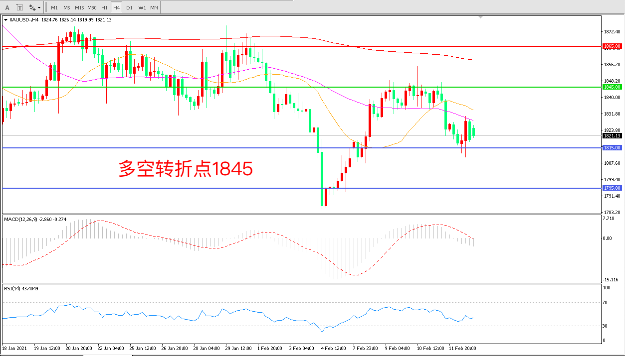 交易策略:在1845.00之下看跌,目标1815.00 1795.00