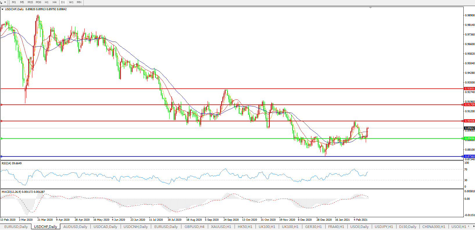交易策略:0.8900上方看涨,目标0.9040、0.9170
