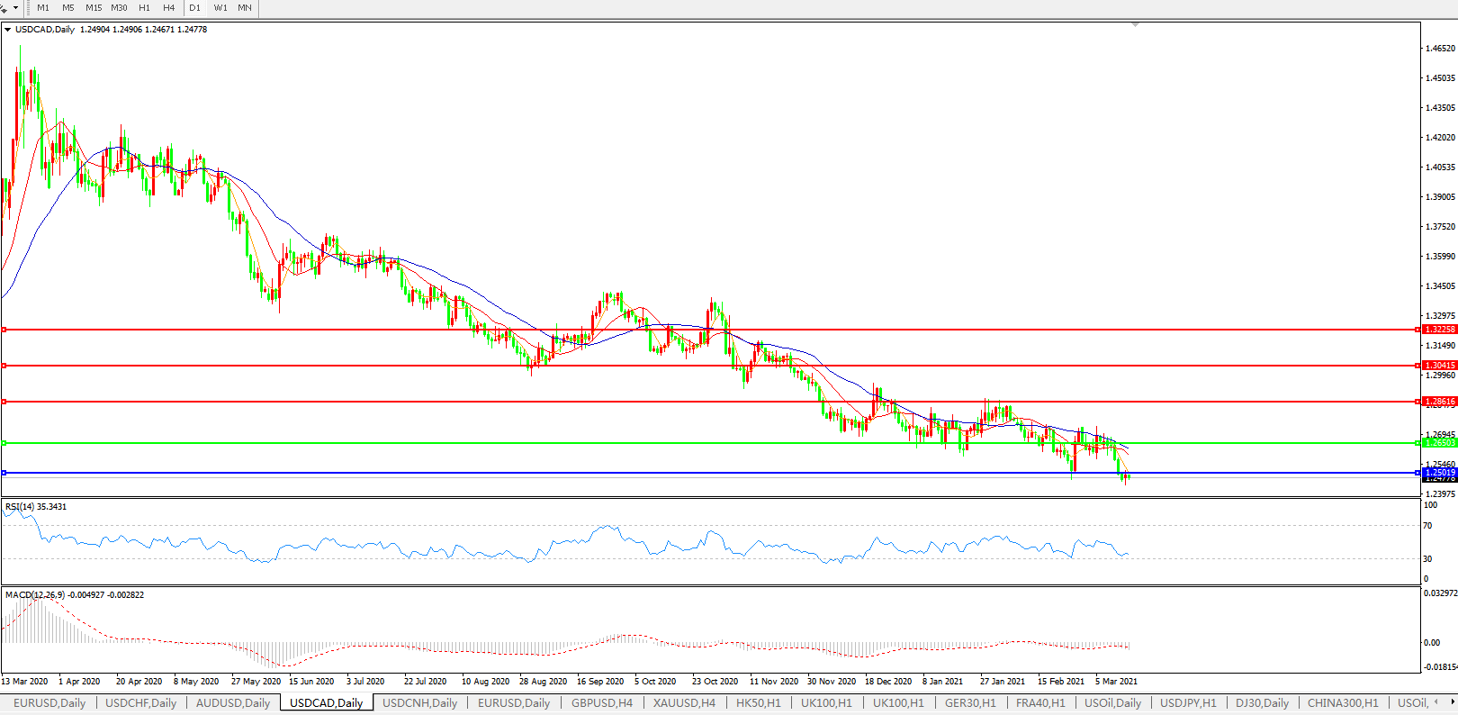 美元兑加元USDCAD    日线图: