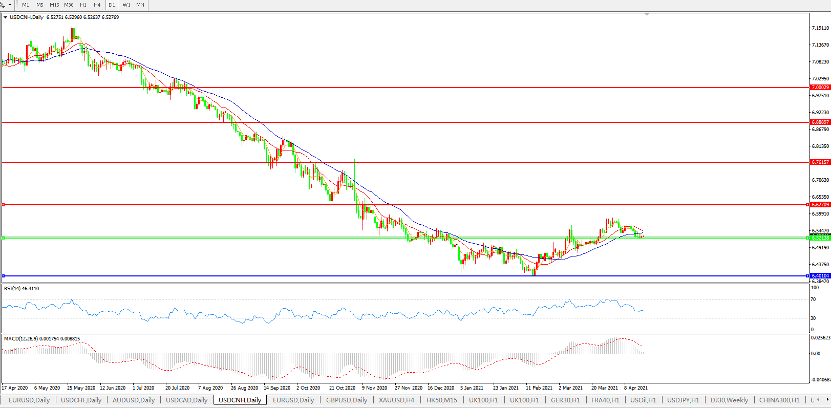 备选策略: 在6.5200之上,看涨,目标价位为6.6270,然后为6.7615。
