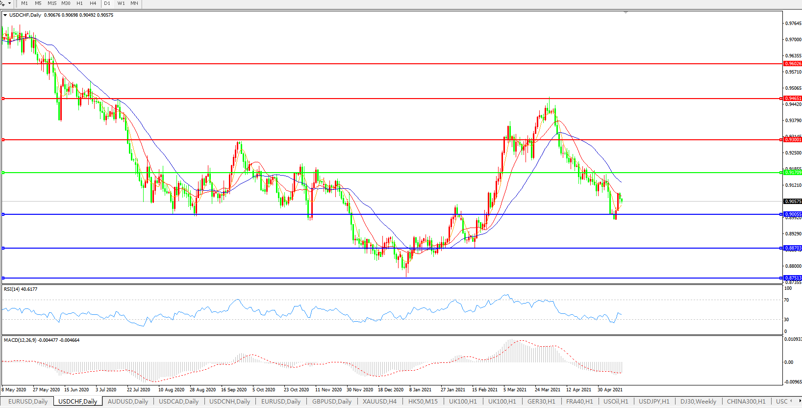 美元兑瑞郎USDCHF 日线图: