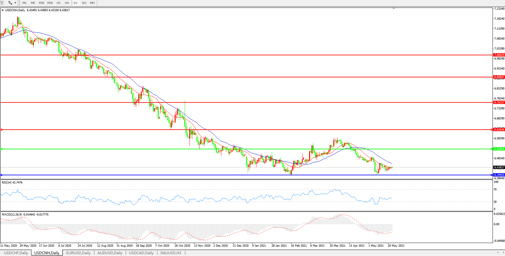 备选策略: 在6.5200之上,看涨,目标价位为6.6270,然后为6.7615。