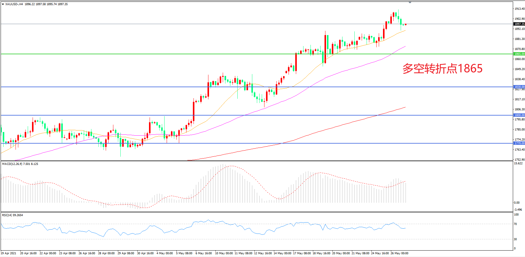 多空转折点:1865.00