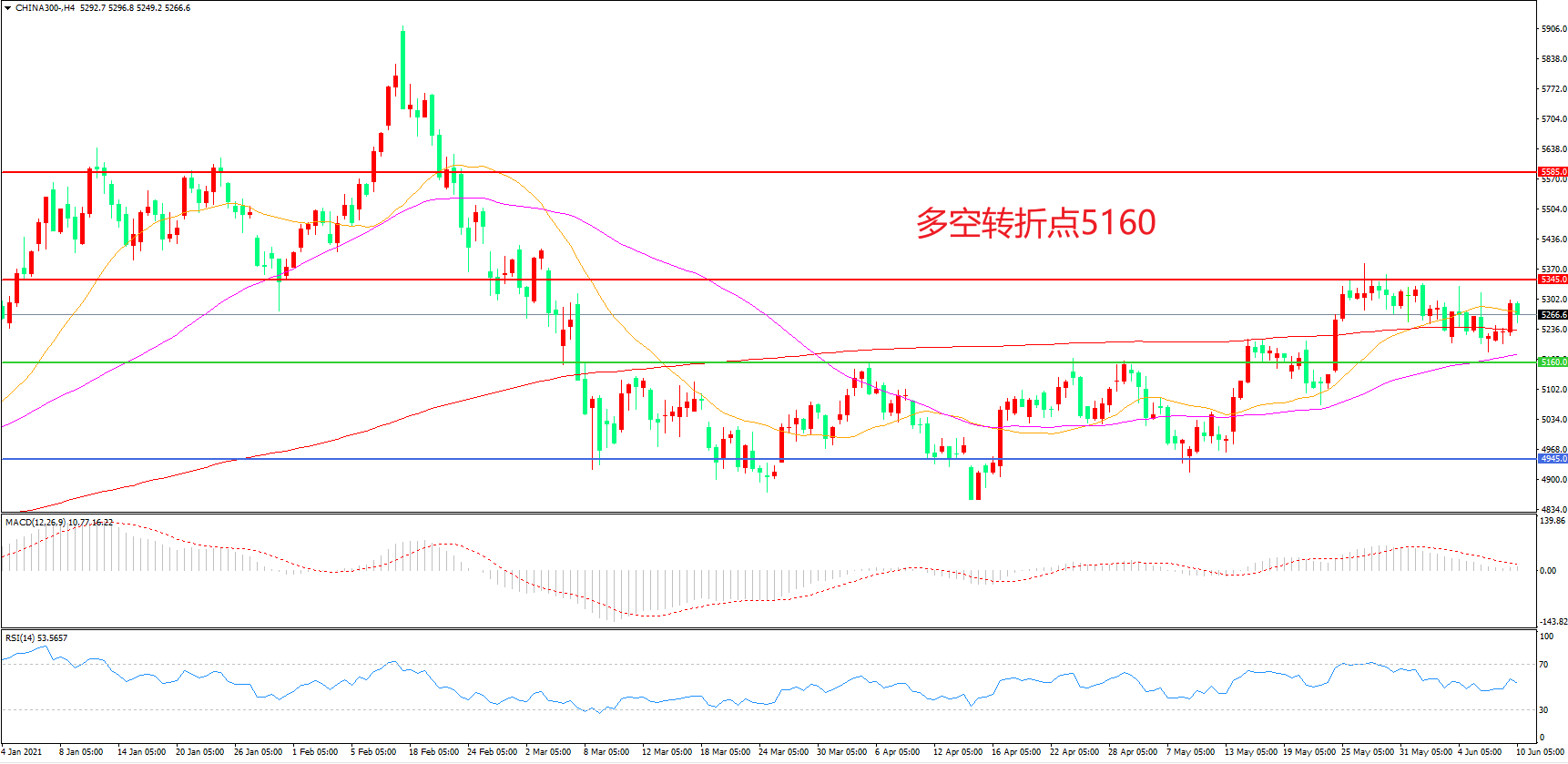 多空转折点:5160.00