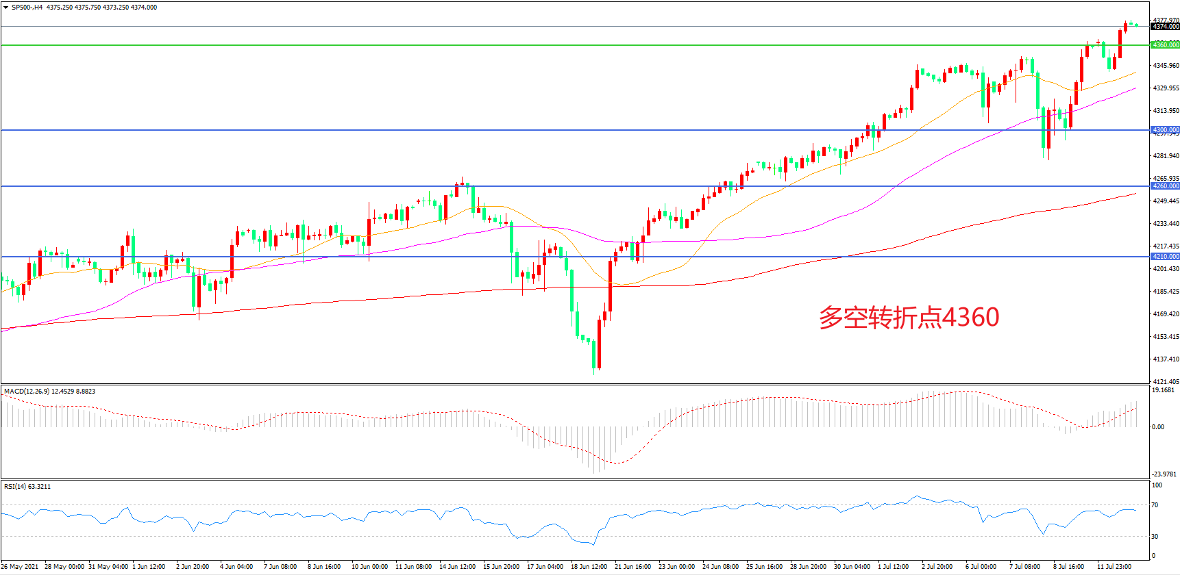 多空转折点:4360.00