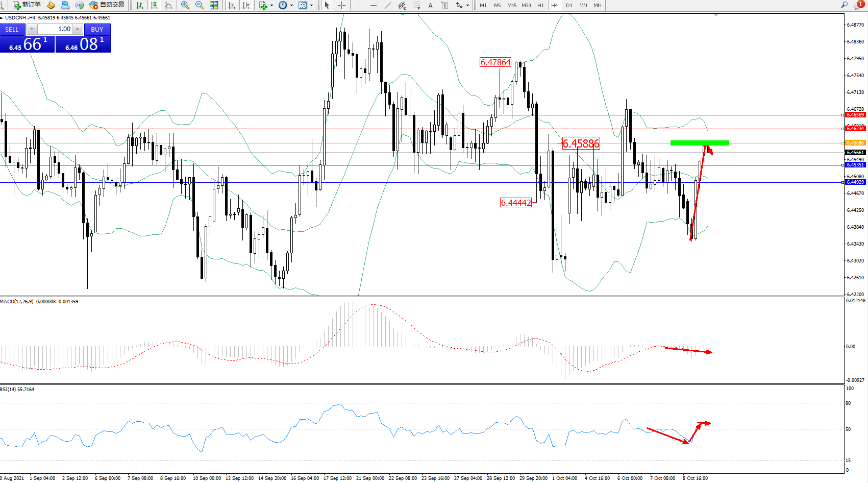 交易策略:6.45886下方看跌,目标6.45351、6.44929