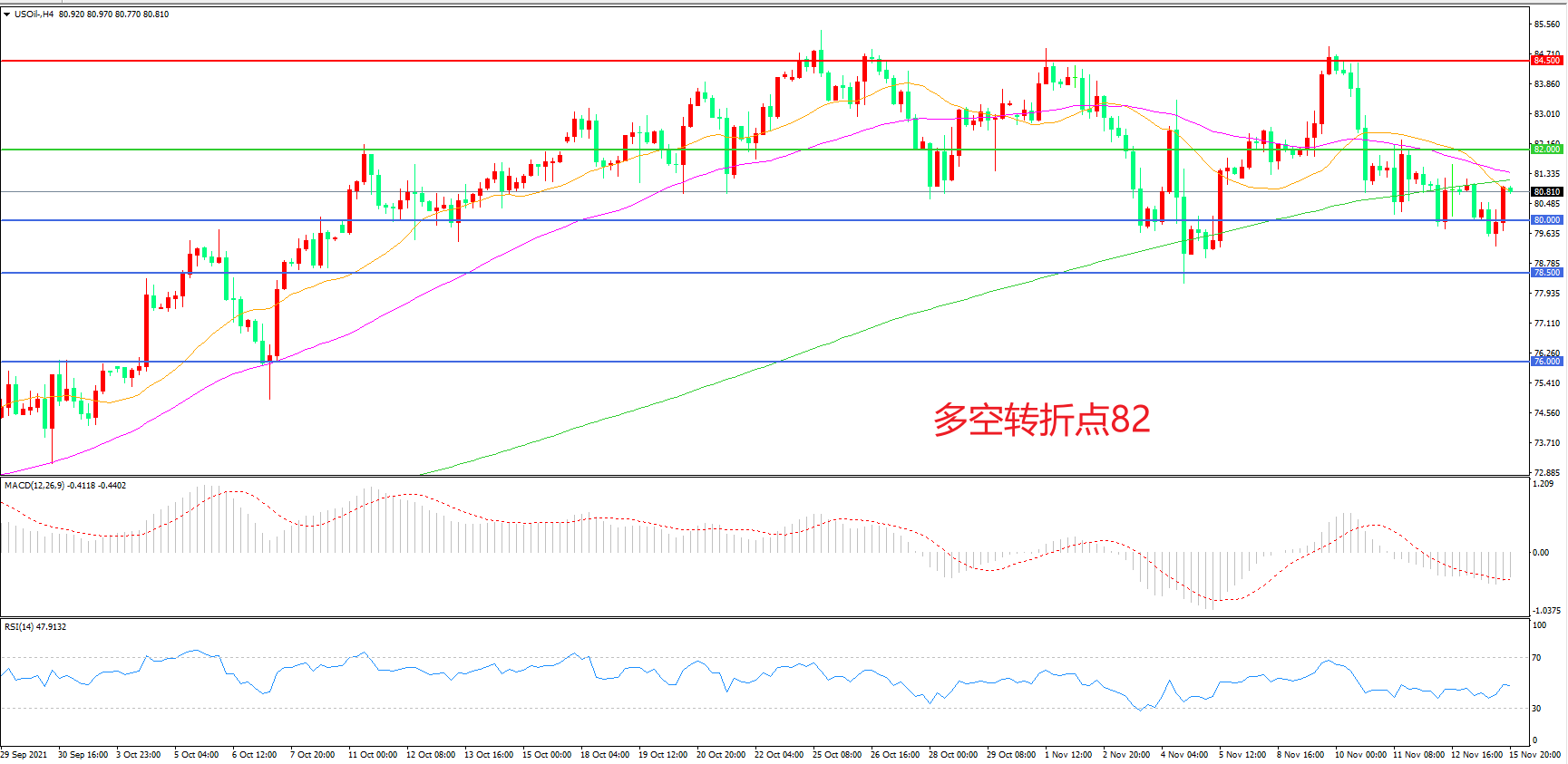 多空转折点:82.00