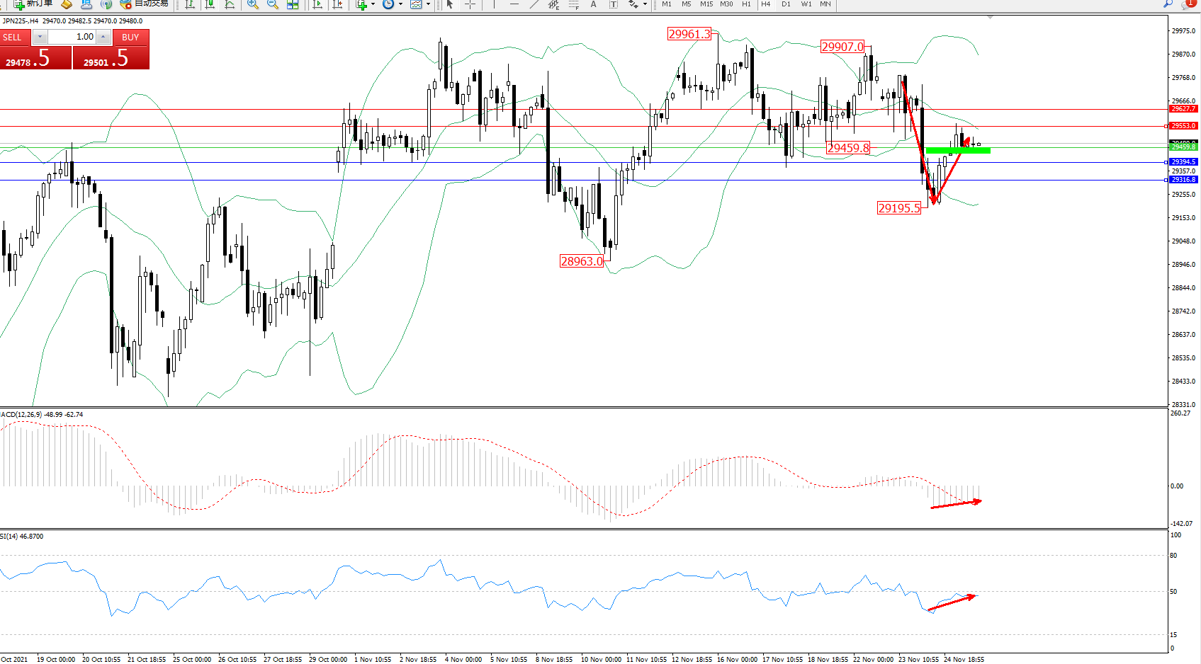 备选策略:29459下方看跌,目标29394、29316