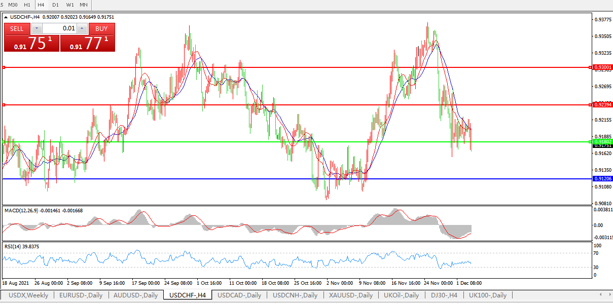 美元兑瑞郎USDCHF 4小时图: