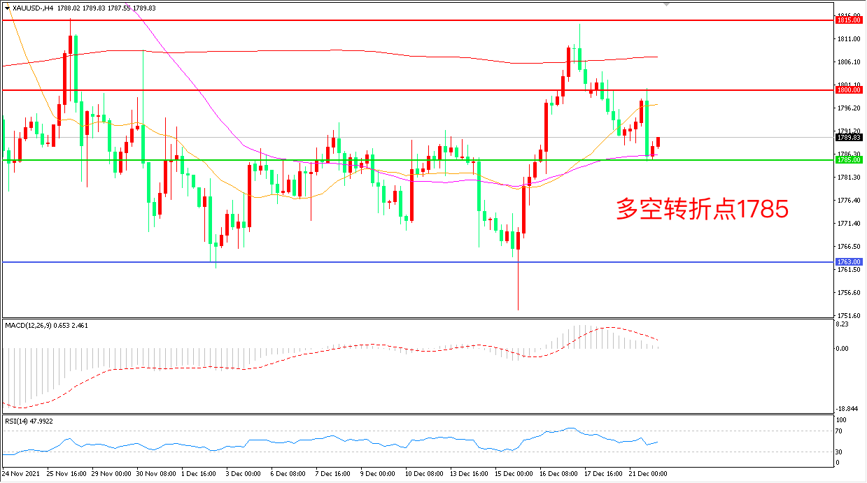 交易策略:在1785.00之上看涨,目标1800.00 1815.00