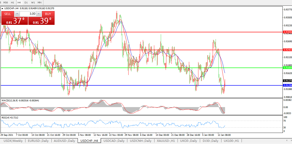 美元兑瑞郎USDCHF 4小时图:
