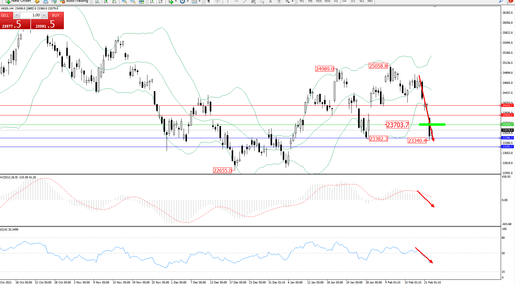 恒指HK50 ——4小时K线图显示:
