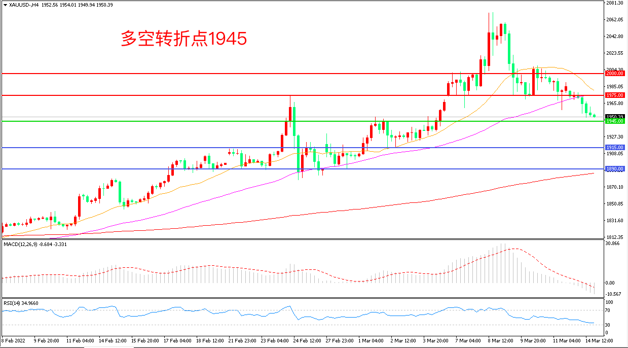 备选策略:在1945.00之下看跌,目标1915.00       1890.00