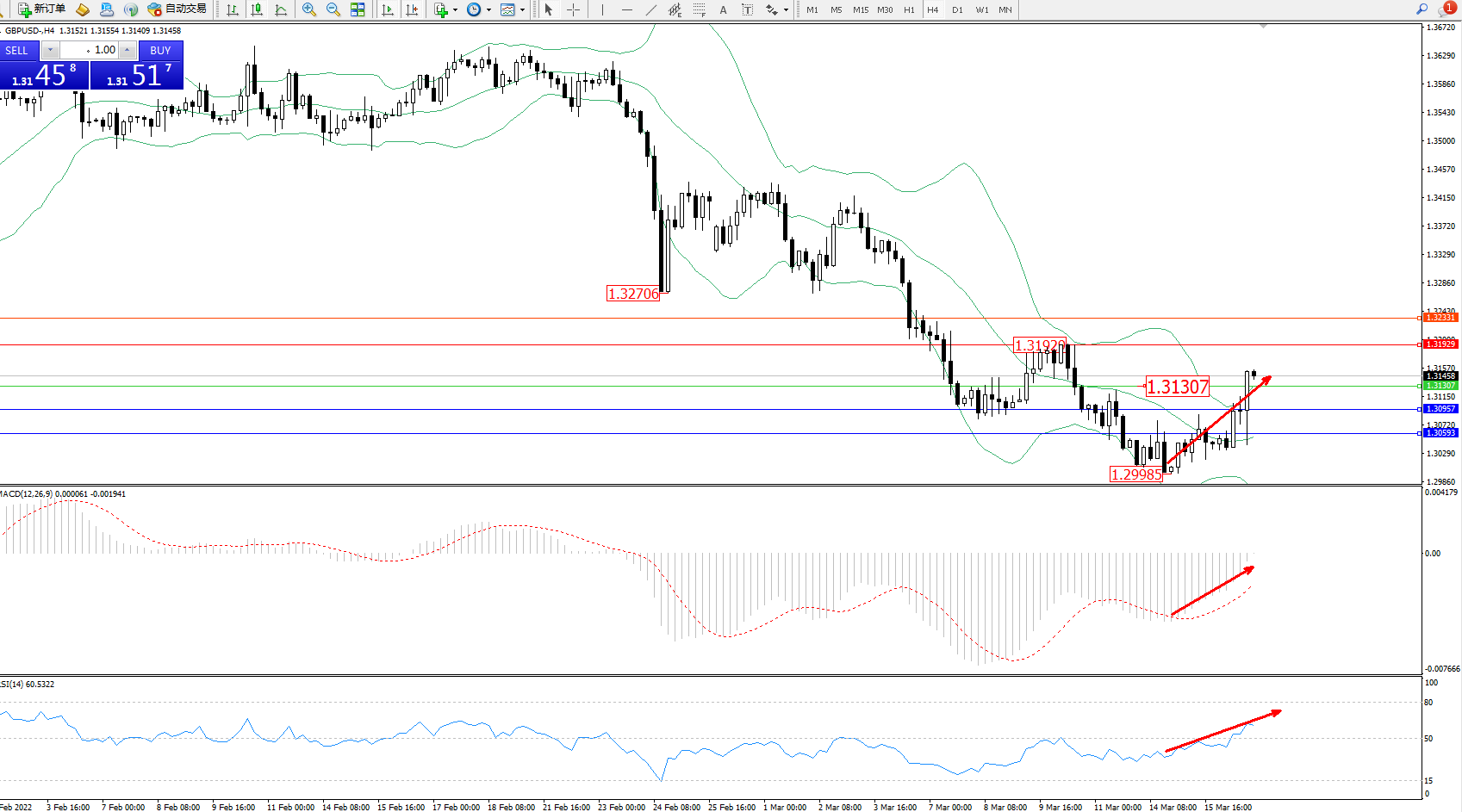 交易策略:1.31307上方看涨,目标1.31929、1.32331