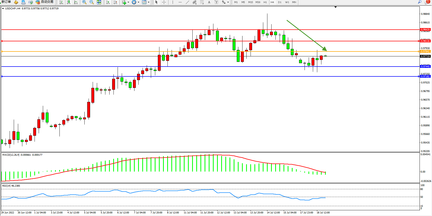 美元兑瑞郎维持0.97719附近震荡,随着美联储政策制定者大幅调高利率,通胀将继续令市场参与者感到意外。