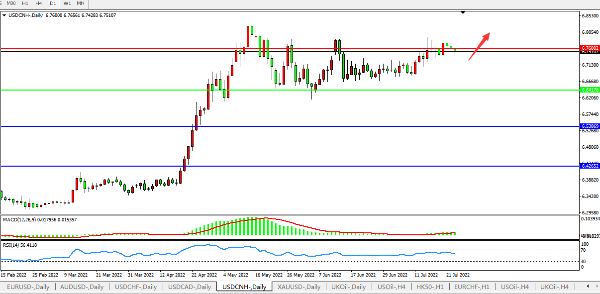 美元人民币USDCNH 日线图: