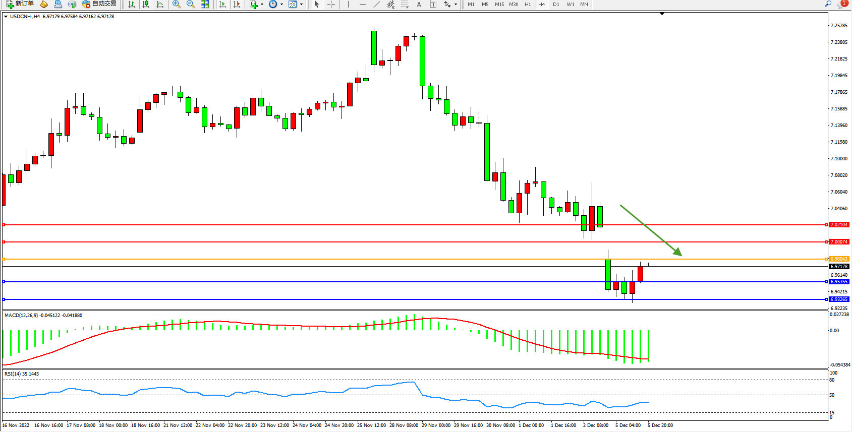 交易策略:6.98043下方看跌,目标6.95355、6.93265