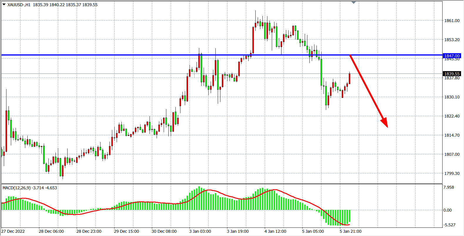 交易策略:在1847.00 之下看跌,目标1825.00 1810.00