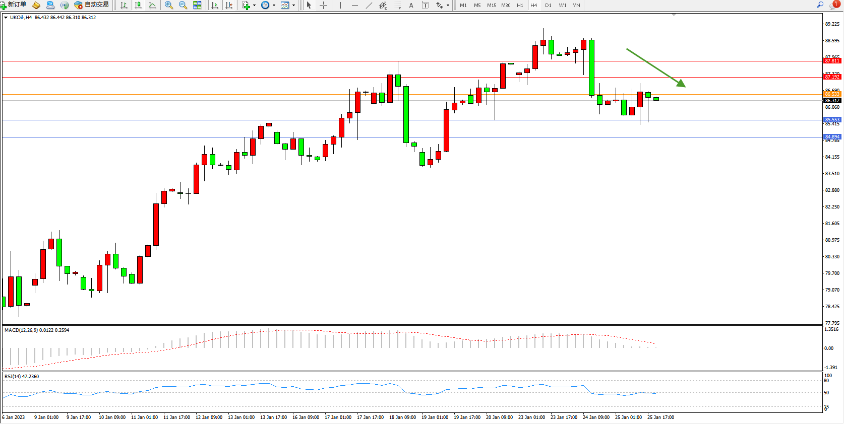 布油维持86.312附近震荡,美国至1月20日当周EIA原油库存 53.3万桶,预期97.1万桶,前值840.8万桶。俄克拉荷马州库欣原油库存 426.7万桶,前值364.6万桶。