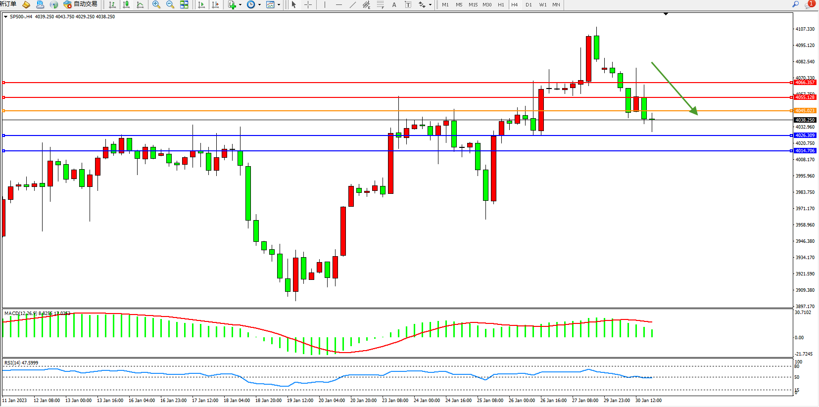 标普SP500——4小时K线图显示:
