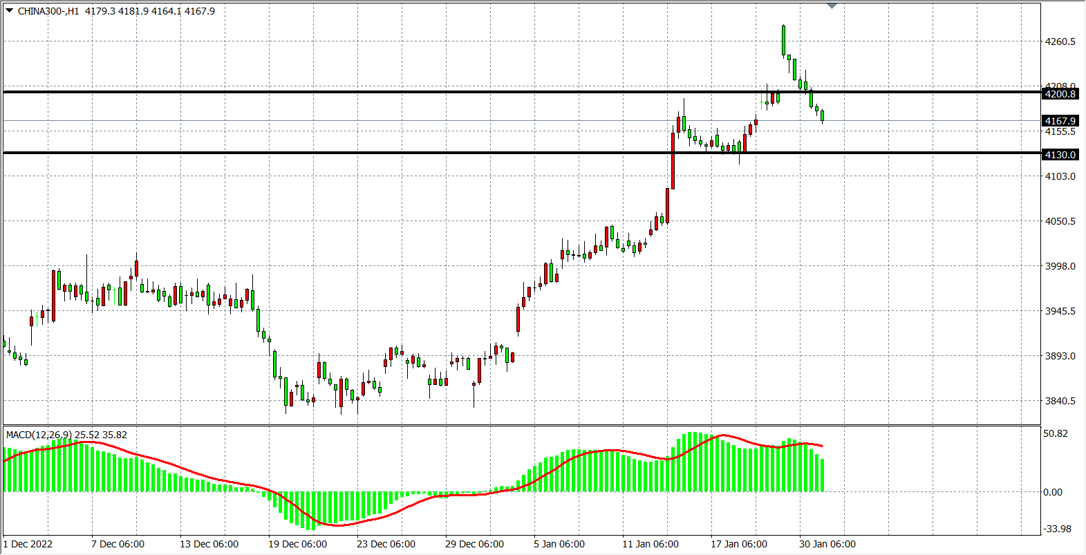 沪深300:4130-4200区间盘整
