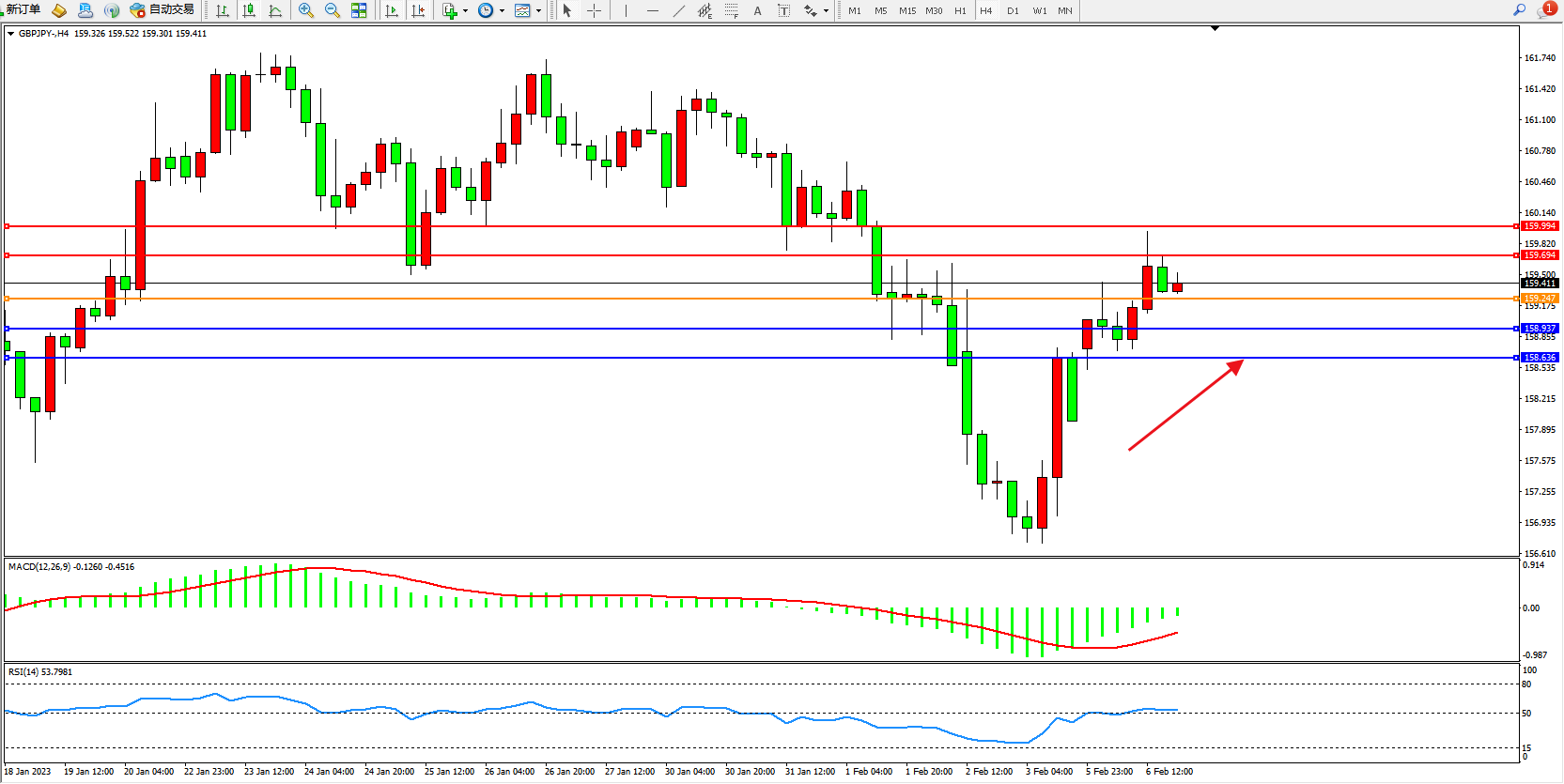 交易策略:159.247上方看涨,目标159.694、159.994