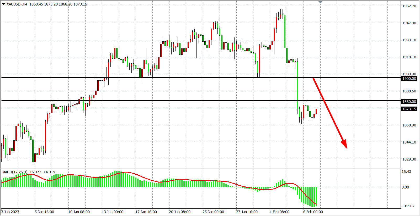 交易策略:在1900.00 之下看跌,目标1860.00         1840.00