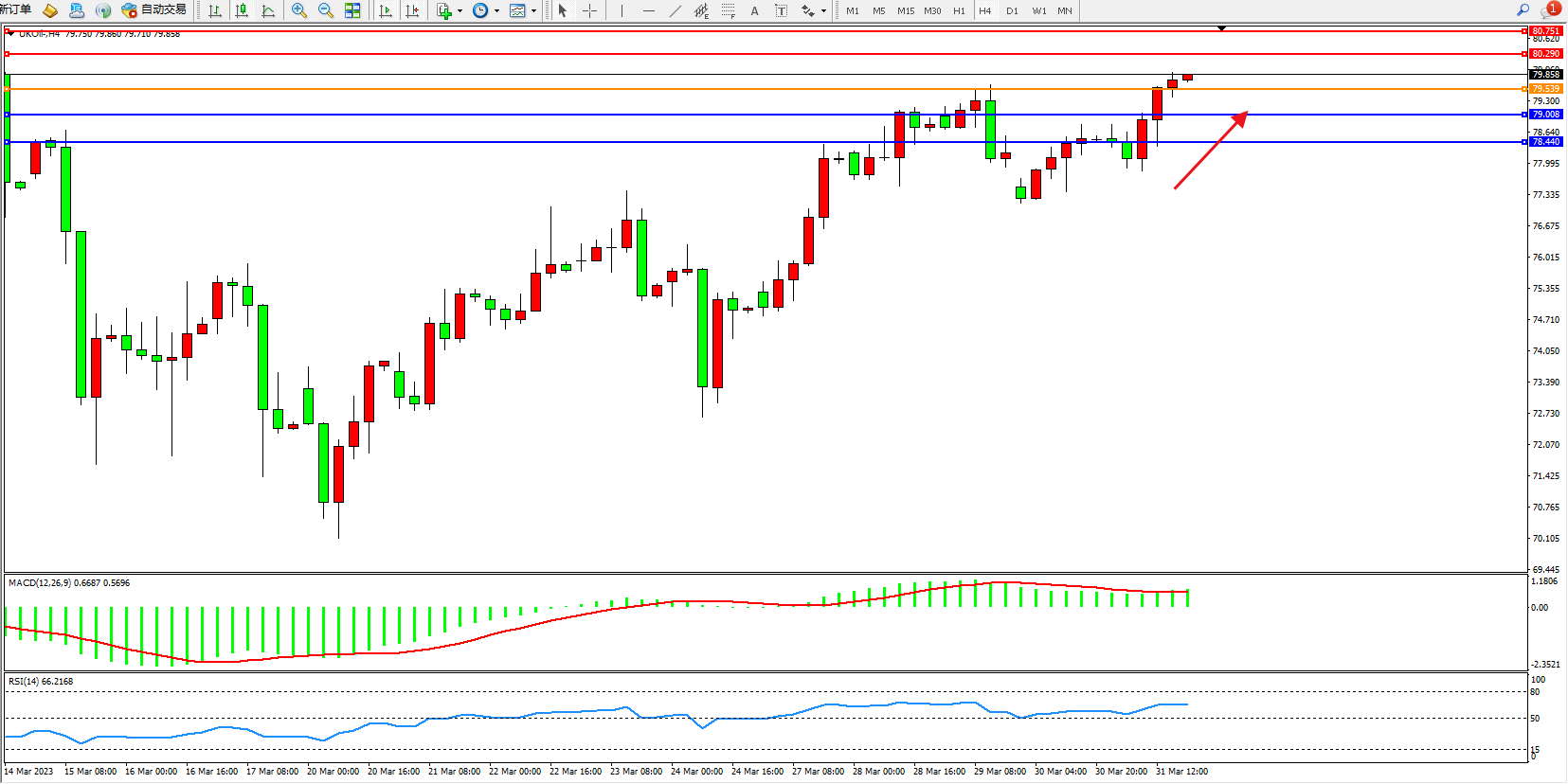 交易策略:79.539上方看涨,目标80.290  80.751