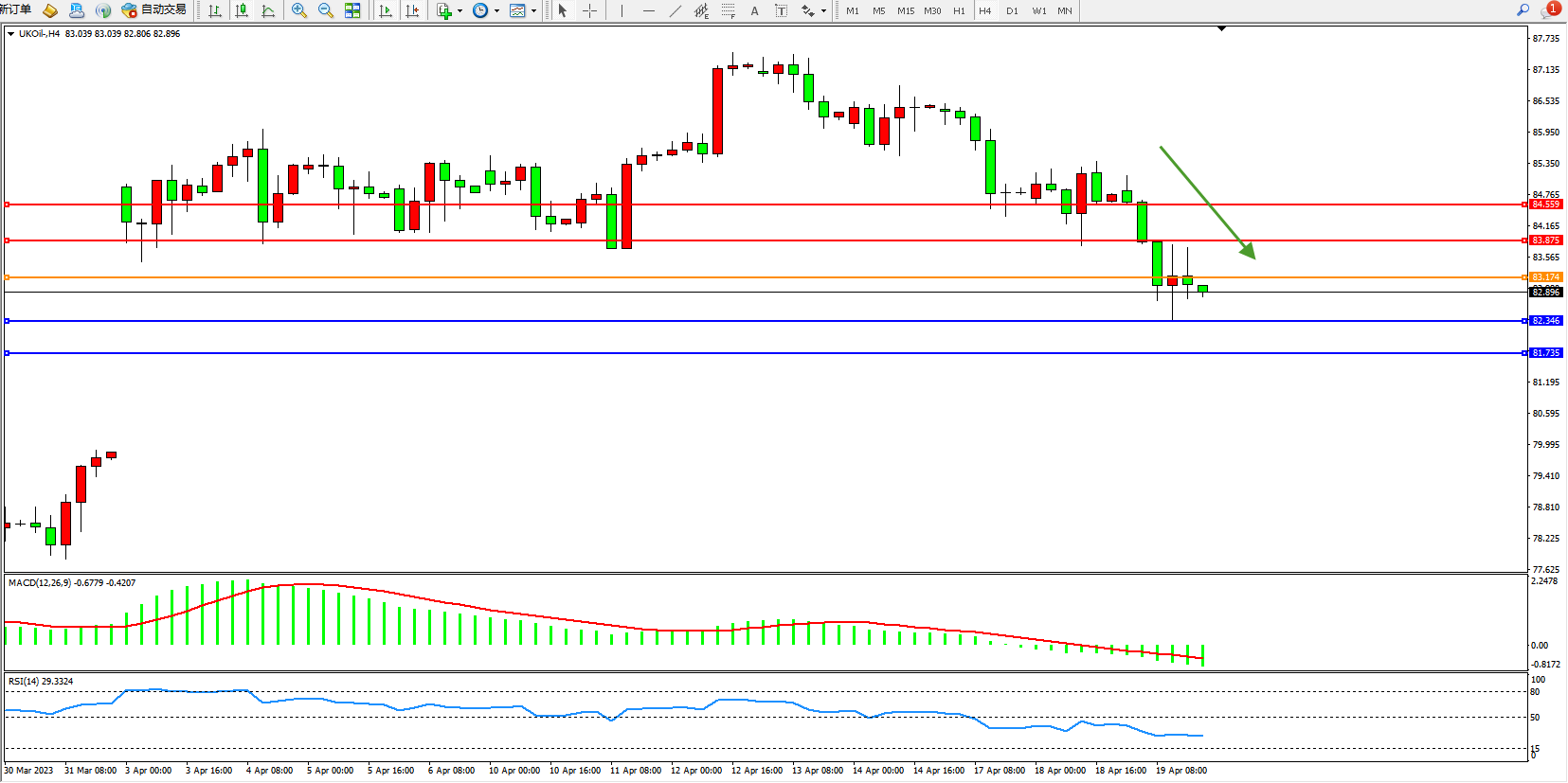 交易策略:83.174下方看跌,目标82.346 81.735
