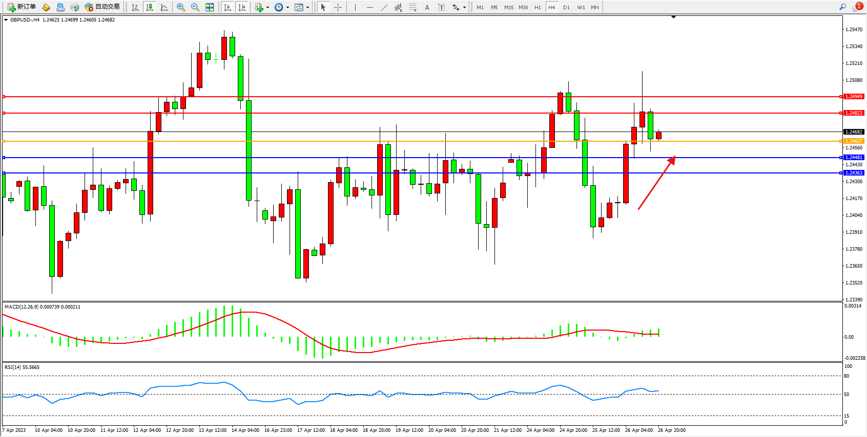 交易策略:1.24607上方看涨,目标1.24823  1.24949