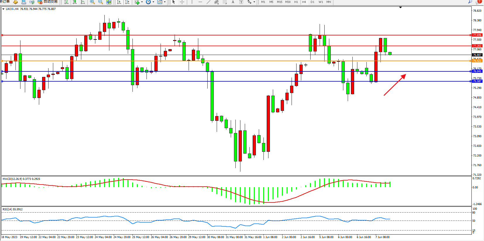 布油UKOil——4小时K线图显示: