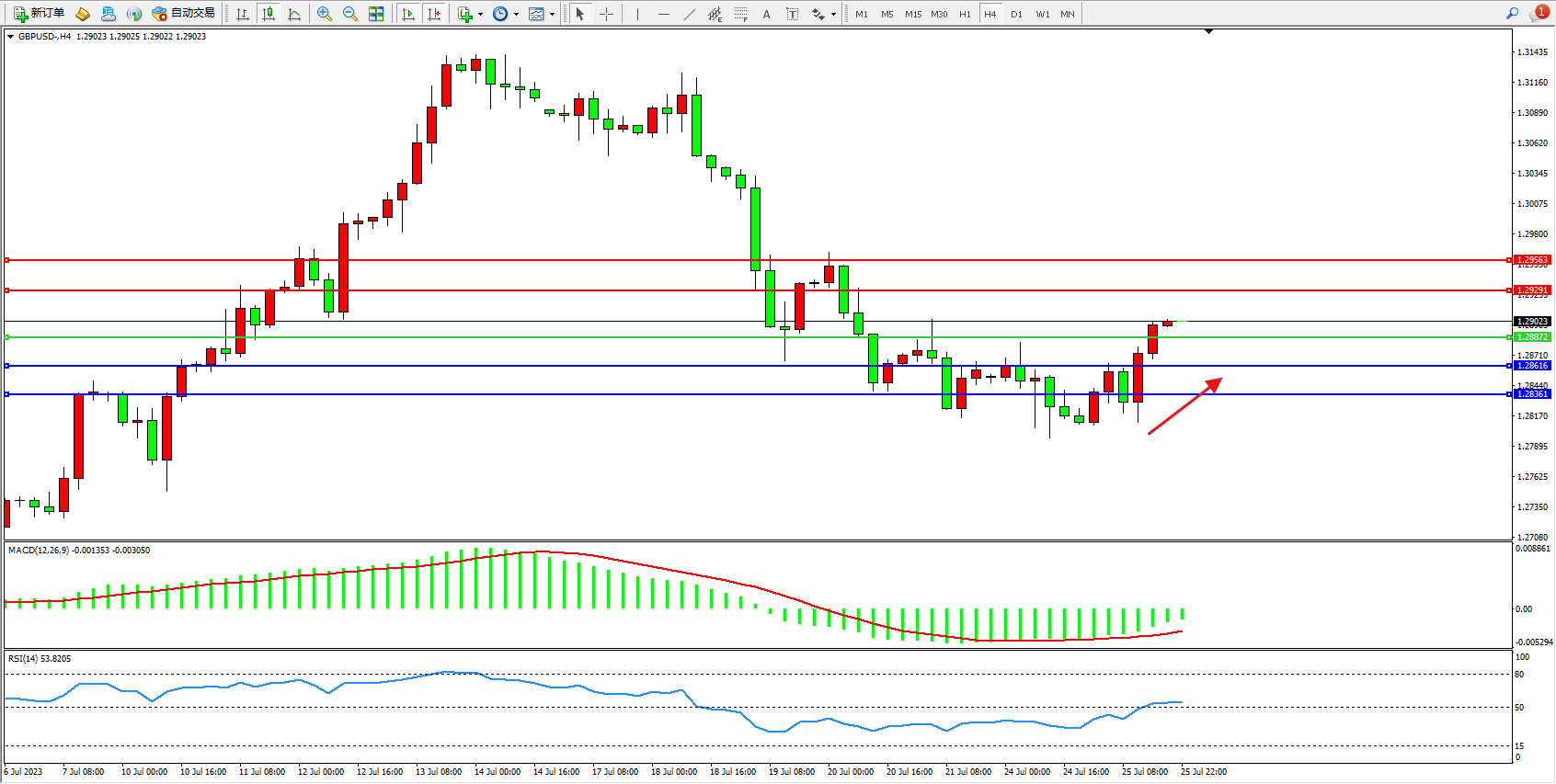 英镑美元GBPUSD ——4小时K线图显示: