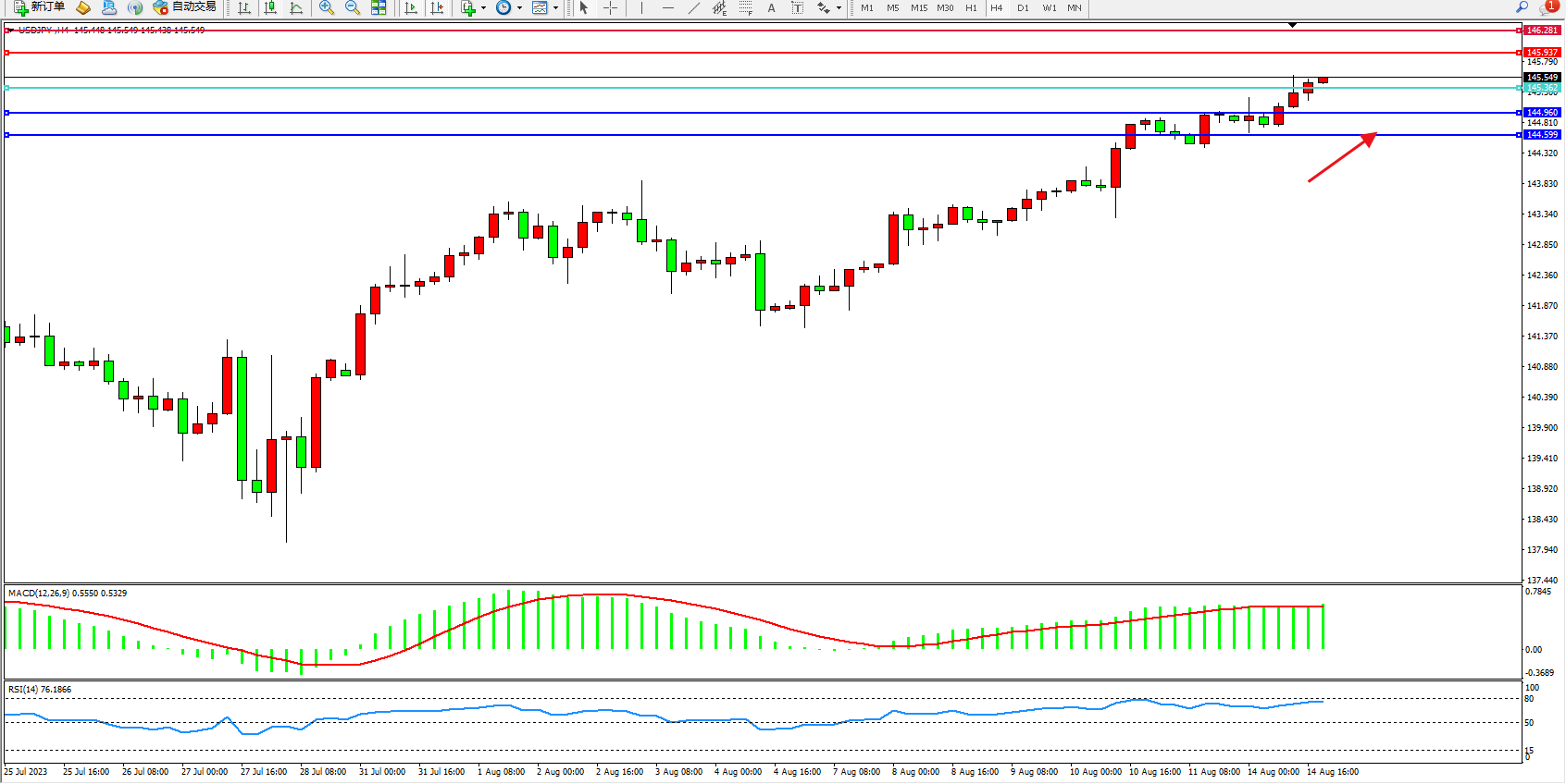 美元兑日圆维持145.549附近震荡,日本的低收益率使日很容易成为做空者和融资交易的目标,日本和美国之间不断扩大的利差导致日持续疲软。