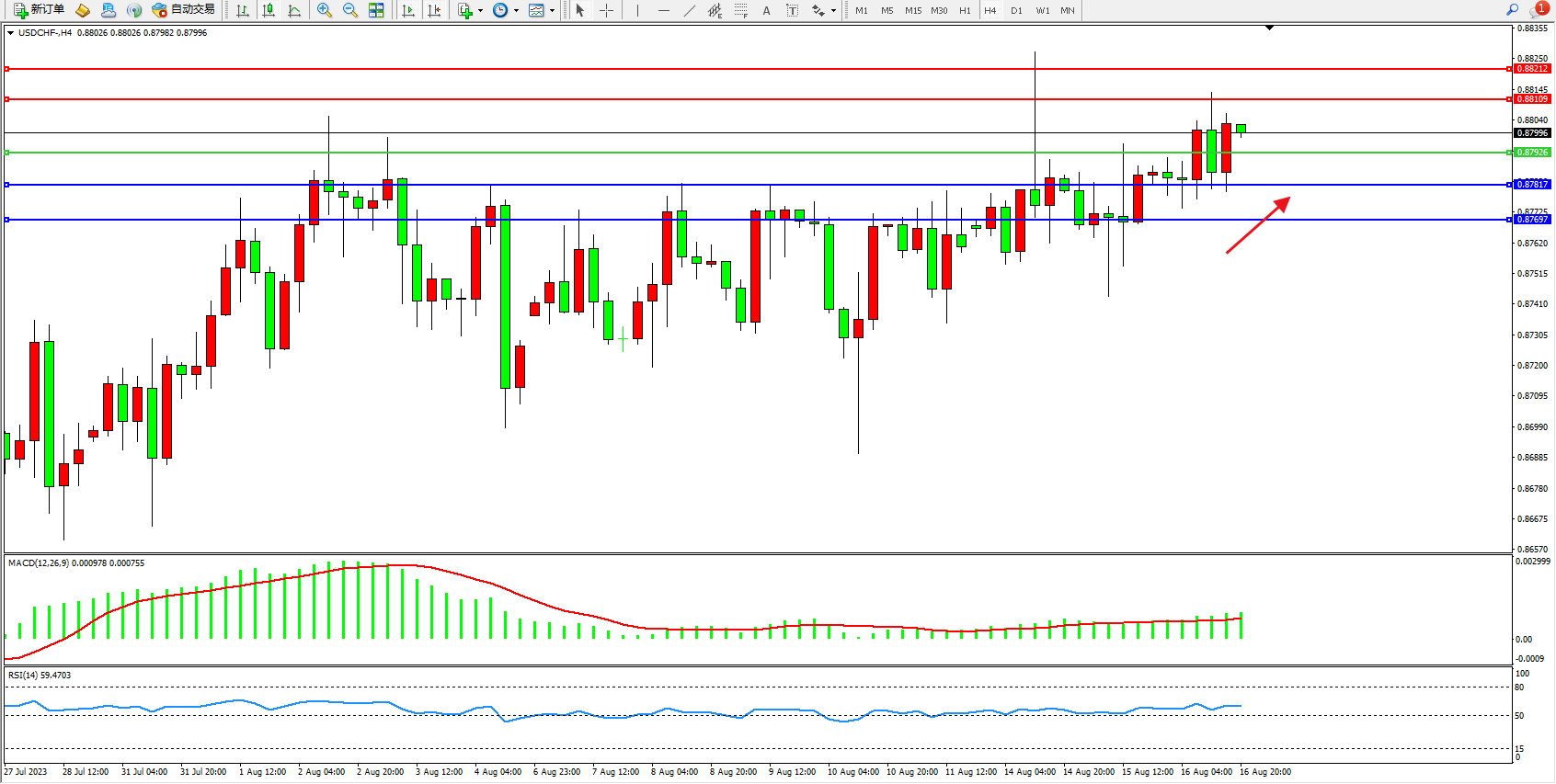 备选策略:0.87926下方看跌,目标0.87817  0.87697