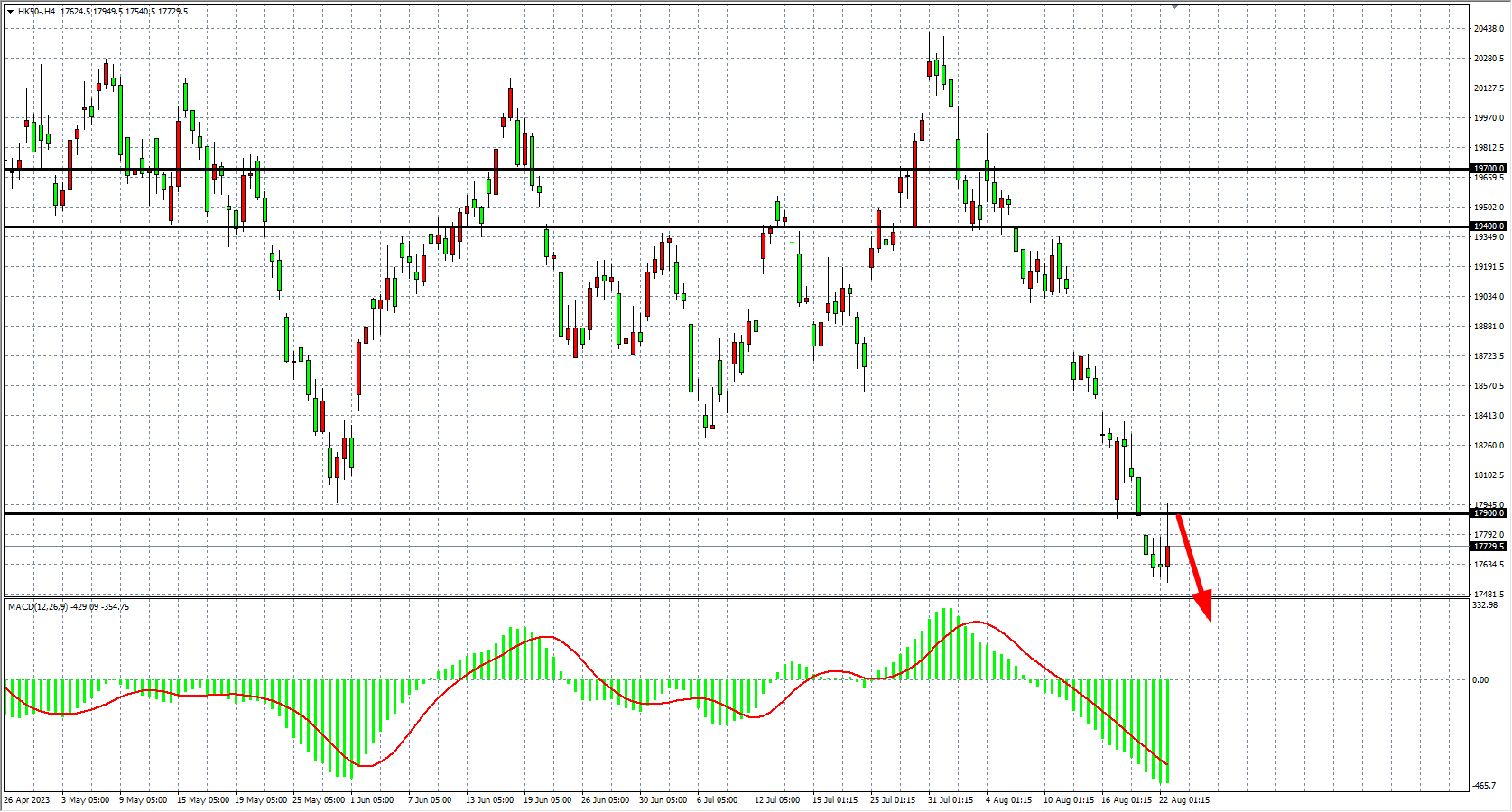 交易策略:17900 下方看跌,目标 17500 17200